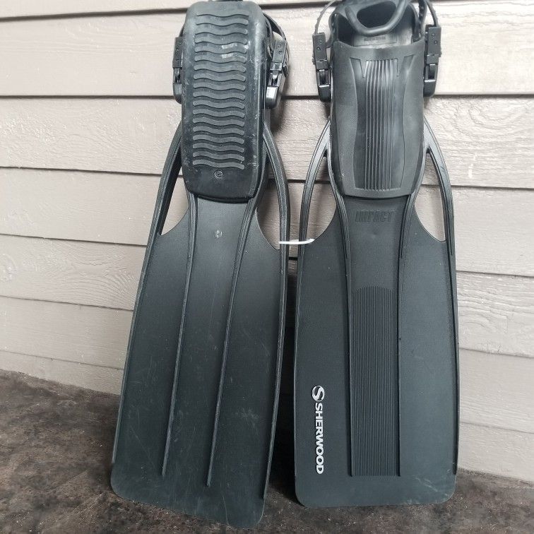 Made by SHERWOOD Scuba Very Nice Scuba flippers. 27.5 inches in length. Size: Regular ( adjustable size) For sale or best offer