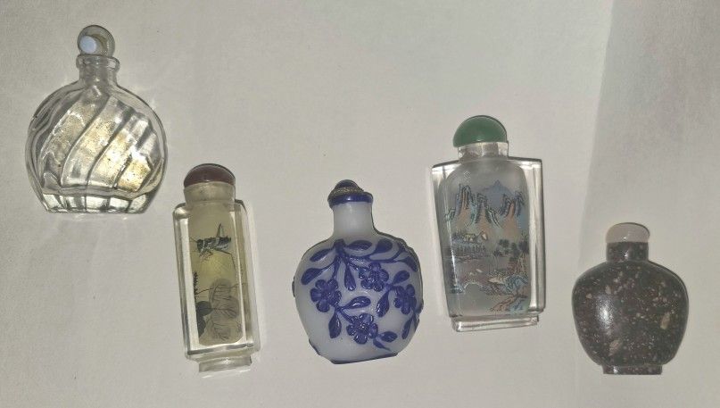 Set Of 5 Chinese Perfume/liquid/medicine/Peking/reverse Painted Bottles with Stoppers