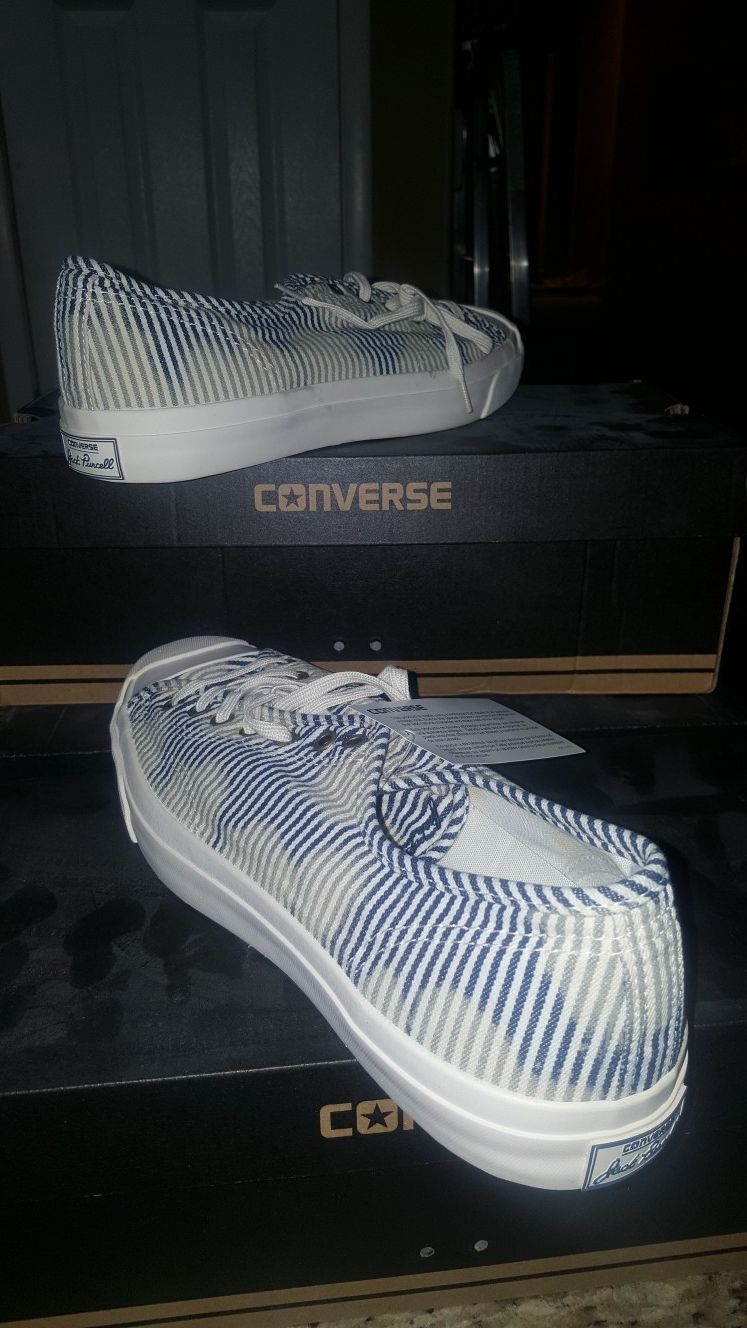 Converse Chuck Taylor Jack Purcell size 12 unisex men's women's brand new never worn removable insoles color egret/Dozar blue and white striped stripe