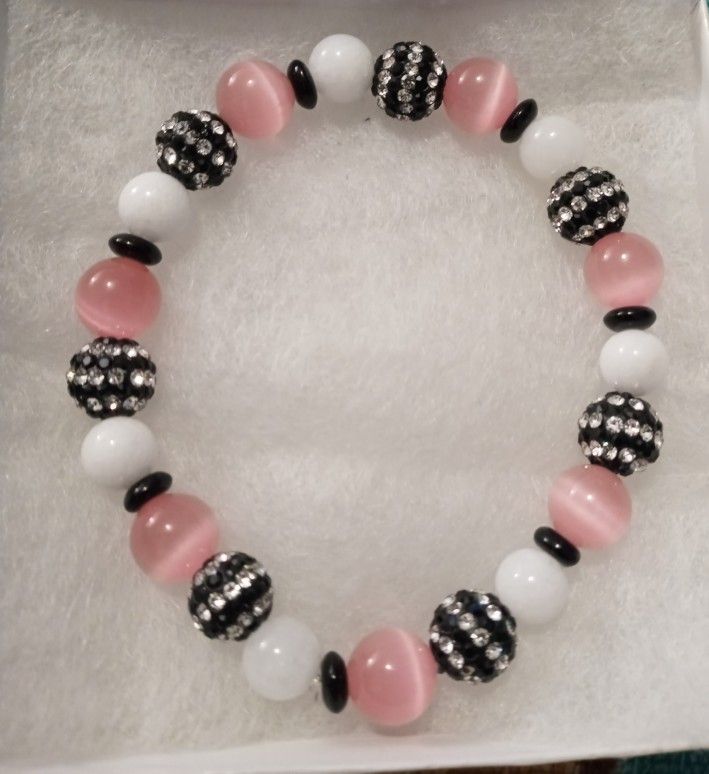 Nice Women Pink And Black Cat Eye Bead Bracelet