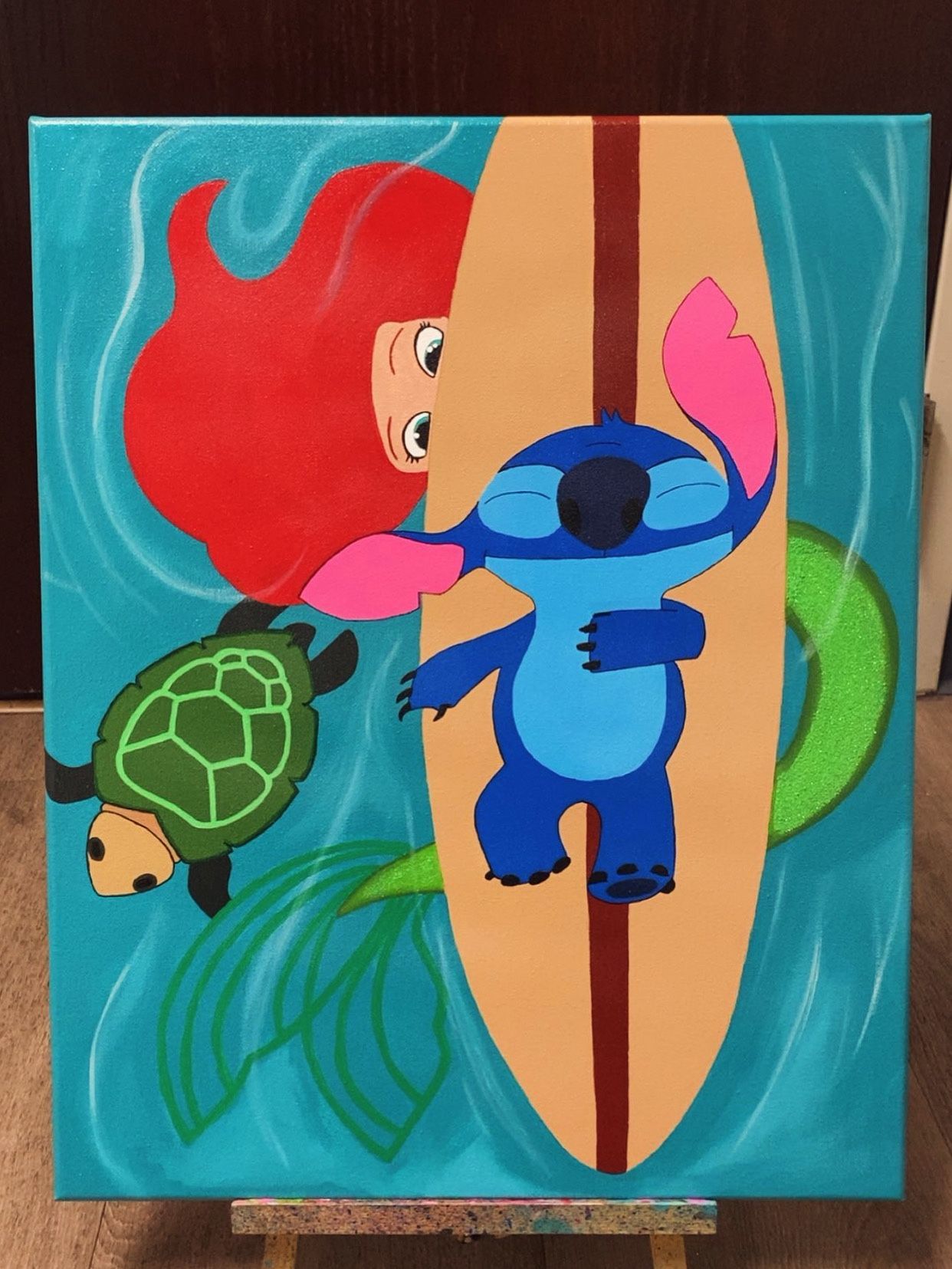 This is a 16’ x 20’ Stitch & Ariel Disney canvas