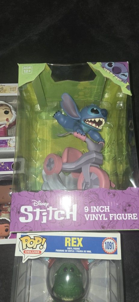I have a couple pop i want to get rid of Belle 10$ Sleeping Stitch 10$ 4pck disney princess 13$ Toystory Rex 13$ And 9inch stich13 Or take them all for 45