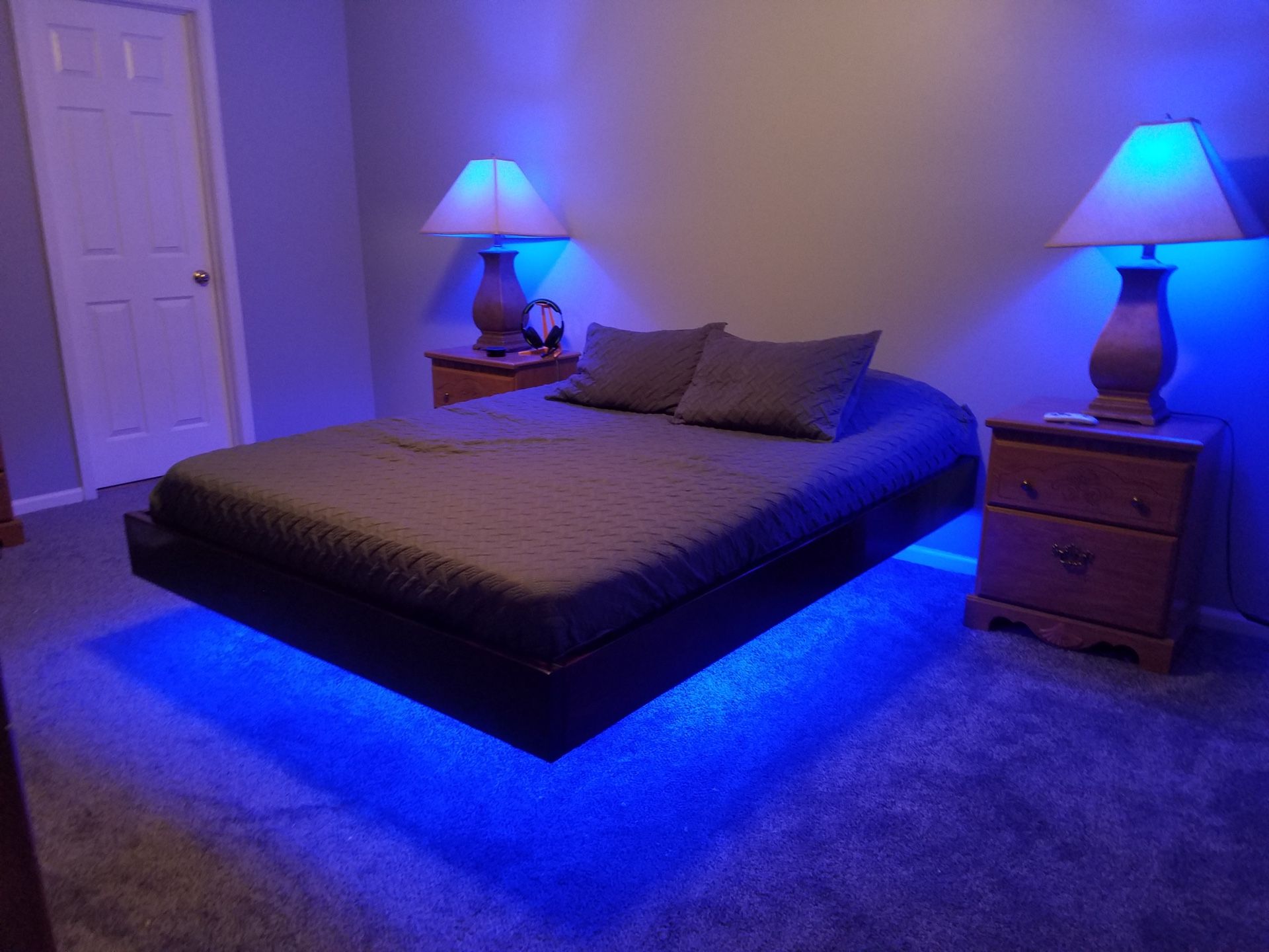 Hello everyone my husband makes Custom floating beds with lights or without lights . Message me if interested .