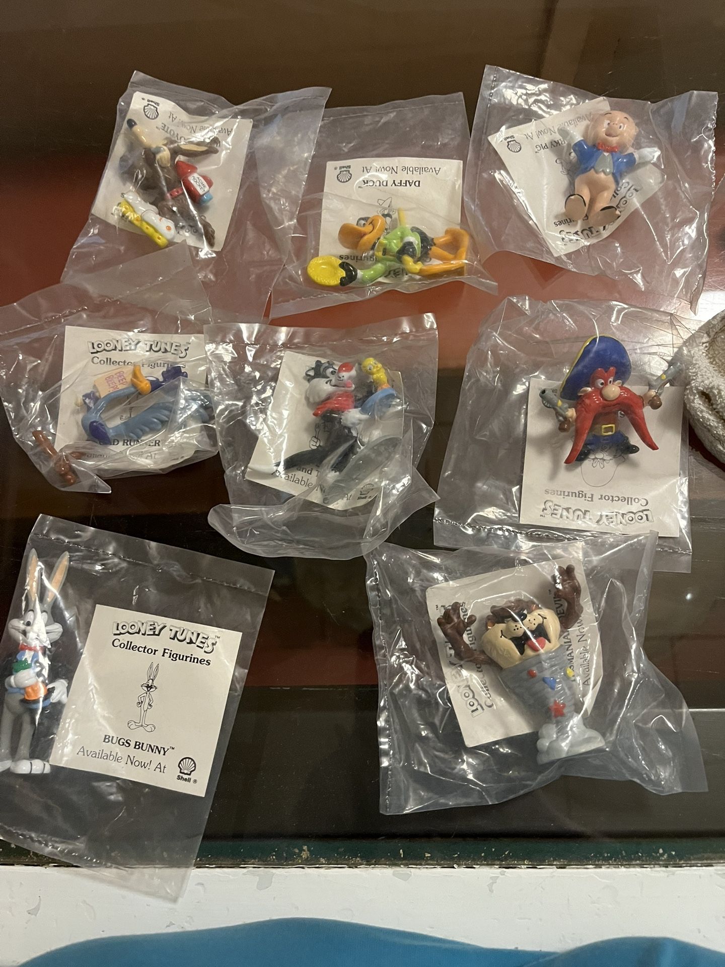 Still in bag 1990 series. Set contains all eight reproduced during this year. Yosemite Sam Wile E Coyote Tasmanian Devil Sylvester and Tweety Bugs Bunny Roadrunner *beep beep* Daffy Duck Porky PPPPig