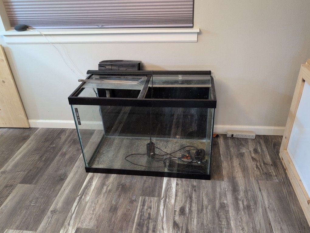 3 feet wide 25 inch tall and 18 inch deep。comes with heater and hang on back filter and led light