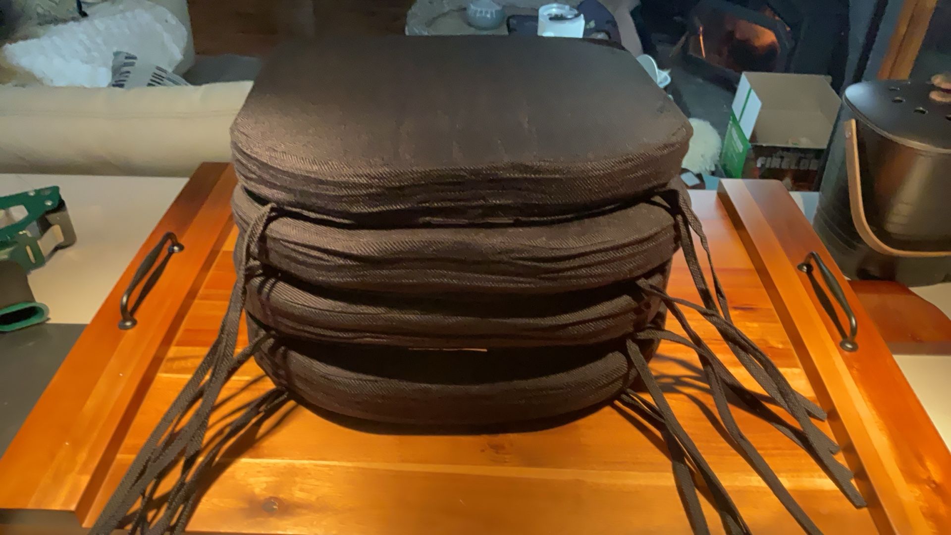 Black Chair Cushions With Ties - Set of 4