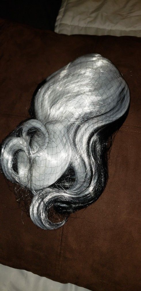 Half Black White Hair Wig. Women Mid Wavy Wig. Cruella inspired shoulder length Wig with Bangs. Item New. Halloween, Dress-up, Cosplay, Comic-Con, Parties, Birthdays, Festivals, Parades, School. $25.00. Cash Only. Pick up Only.