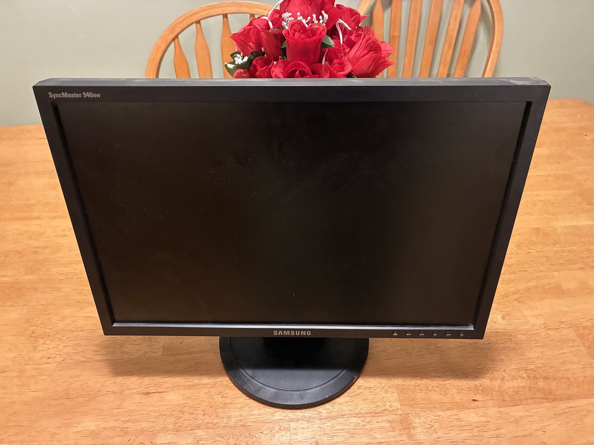Samsung SyncMaster 940BW 19” widescreen monitor in good working condition. • 19-inch display • 1440×900 resolution (16:10 aspect ratio) • 60Hz refresh rate • VGA and DVI inputs • Clean screen – no cracks • Includes power cable Great for office work, school, security camera monitor, garage setup, or secondary display. Older model but reliable and solid build quality. Local pickup only.