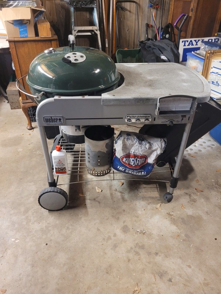 22 inch Weber Grill in good condition. Nothing wrong works perfectly, and it also comes with a charcoal lighting canister plus lighter fluid and charcoal. Wheels are in very good condition. No broken parts.