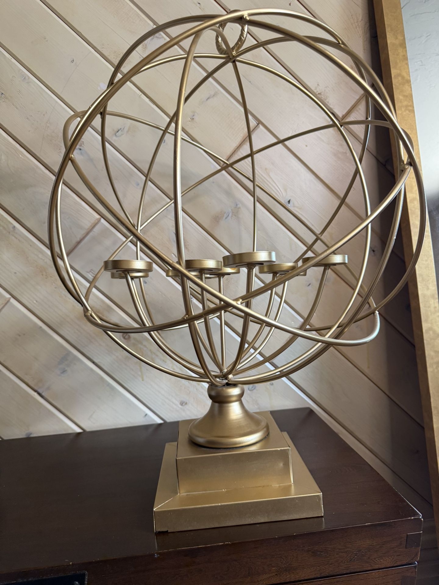 Elegant luxury metal orb candle holder with a high-end sculptural design. Solid, heavy construction with a brushed gold finish — not lightweight or flimsy. Holds multiple tea lights or votives. Perfect as a luxury centerpiece, console accent, or modern home decor statement. • Material: Metal • Color: Gold • Condition: Very good • Style: Luxury / Modern / Glam
