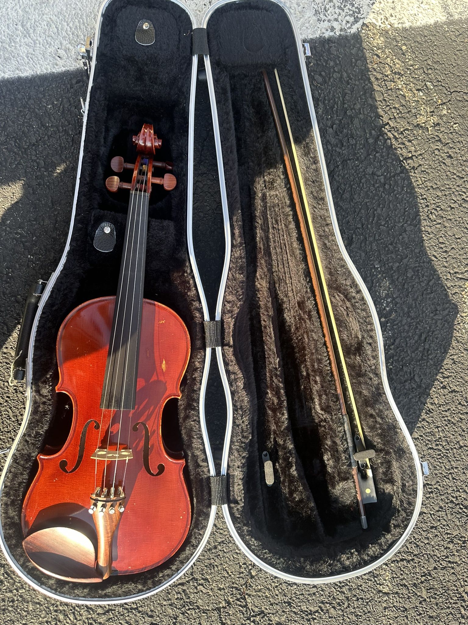 All strings in tact. Just needs tuning and tightening. Comes with bow and case as well. very minor wear. OPEN TO REASONABLE OFFERS