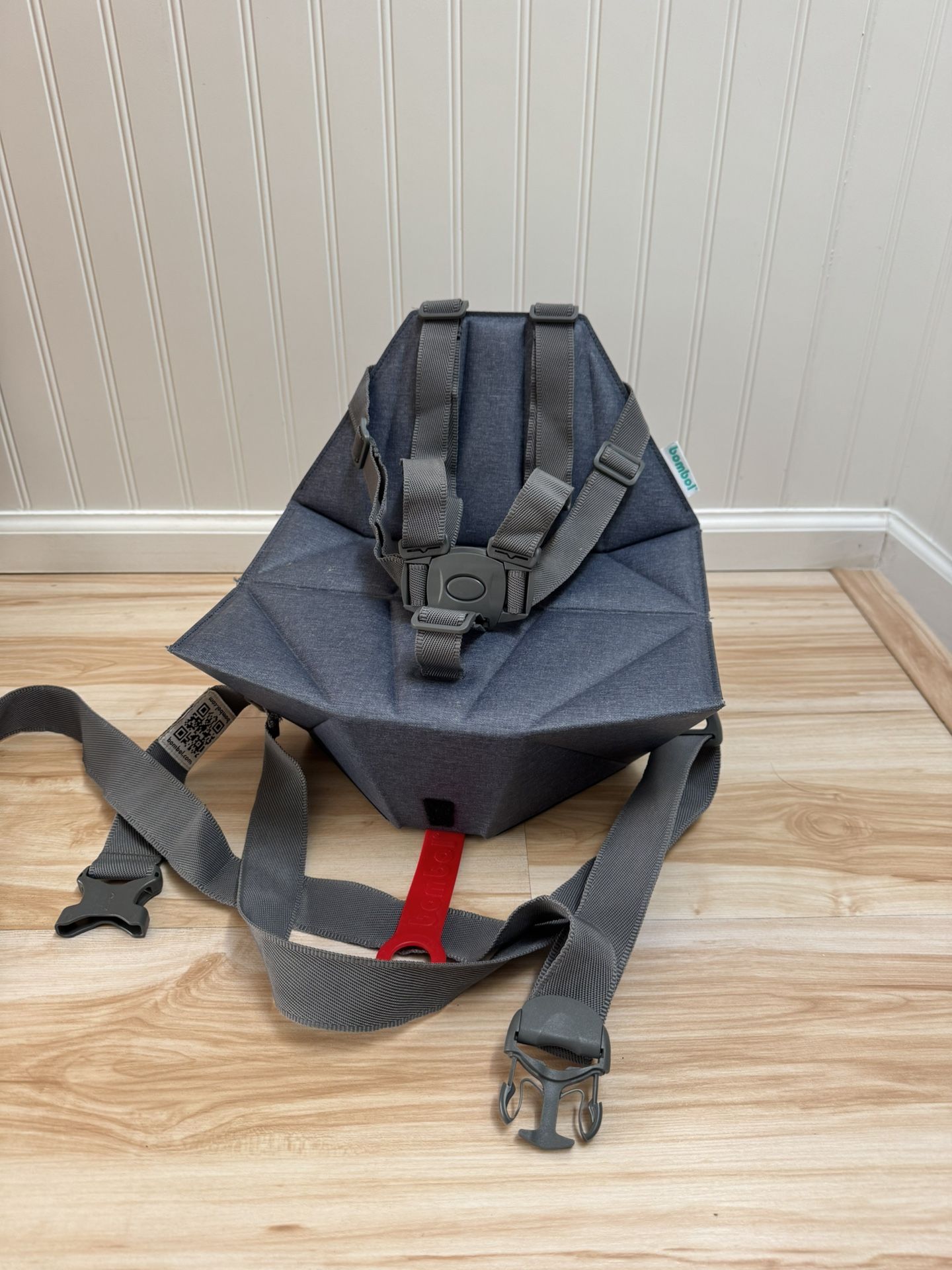 Excellent condition. Smoke-free and pet-free home. Retails new for $150. ● Withstands 20,000 impacts of 165 lbs ● For kids 6 months and up ● Foldable booster to the size of book ● Locks instantly into a safe, sturdy 3D structure ● Ultra-light ● Lateral protection ● Removable 5-point that becomes a 3-point harness ● Stain, abrasion, odour-resistant finish ● Comfy padded seat and backrest ● Fits almost all adult chairs
