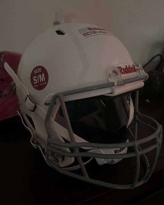 Riddell SpeedFlex Youth Helmet (S/M, White/Blue) – New, comfy, and safe. Tough white shell with soft blue/gray padding inside, fits snug, and has tech to reduce hits. Perfect for youth players. Willing to negotiate.
