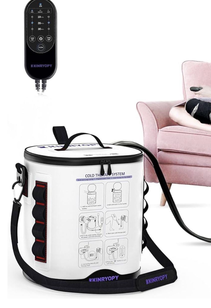 Cold Therapy Machine with Programmable Timer, Portable Ice Machine for Knee After Surgery, Knee Replacement Recovery System, Cryotherapy Pain Relief w/Compression Pad for,Shoulder, Hip and Ankle