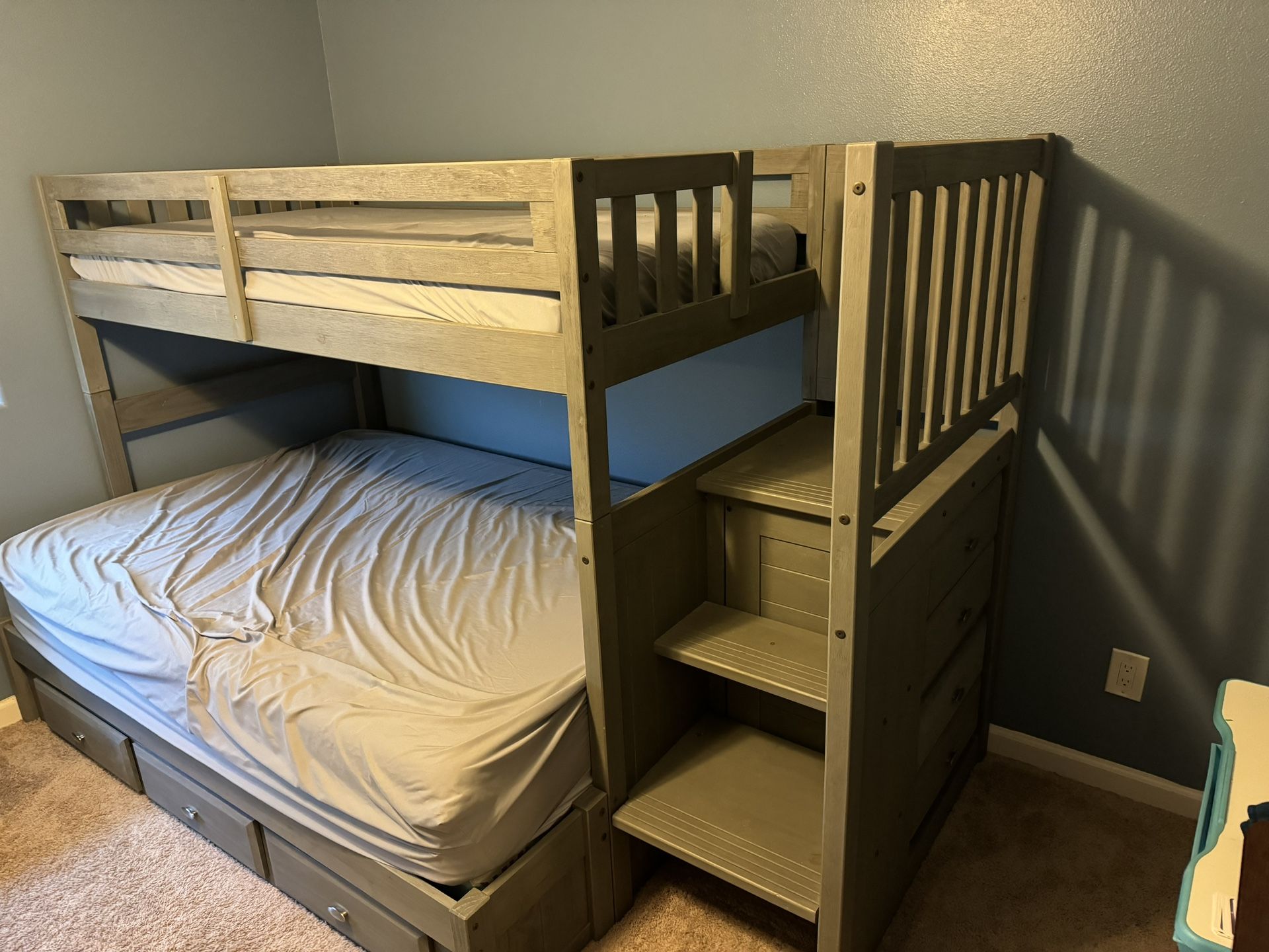 Bunk bed in great condition. Top is a twin lower is a full. Has a lot of storage drawers. mattresses not includeded
