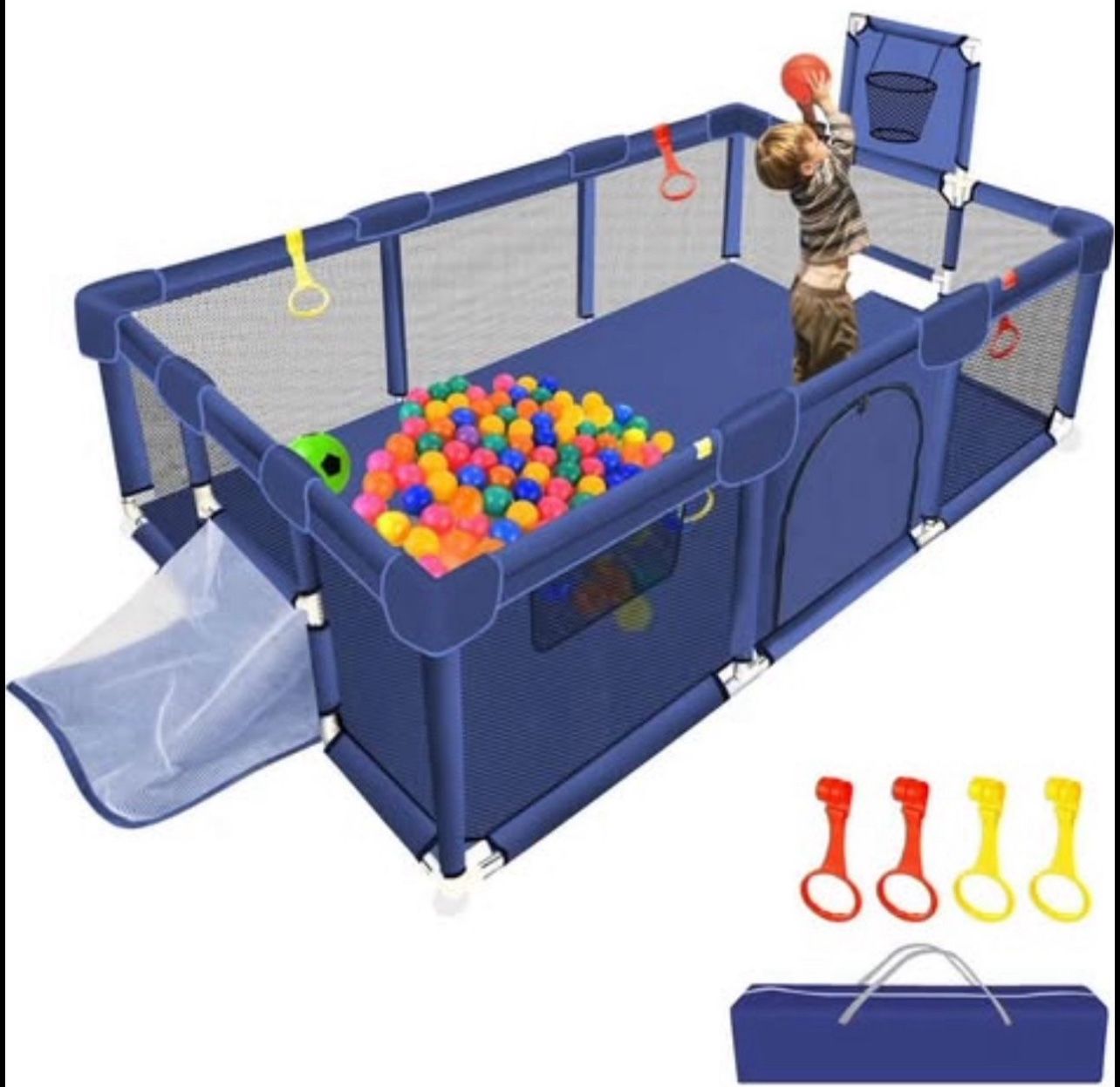 Large Playpen for Babies and Toddlers, Ball Pit for Toddlers, Baby Gate Play Pen Kids Ball Pits, Sturdy Play Yard with Basketball Hoop Soccer Net, Children's Fence Play Area, Infant Safety Gate (Blue) I have several available; yours brand new in box for $50 each