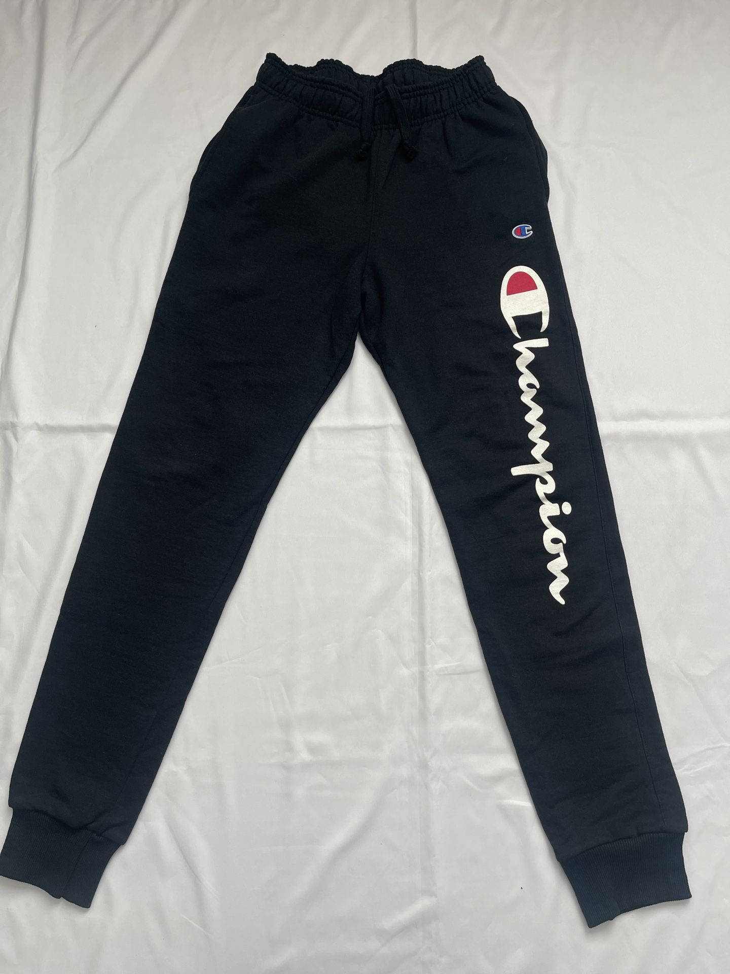 *Brand name: Champion *Pre-owned *Color: Black *Men US size: Small *Size measurement: the length across the waist is approx 13.5" (unstretched width across the waistline) the length from the waist to the bottom is approx 39.5" *Inseam: 30" *Champion graphic logo printed at the left leg *Drawstring jogger *Don't miss the chance to buy this nice Champion jogger
