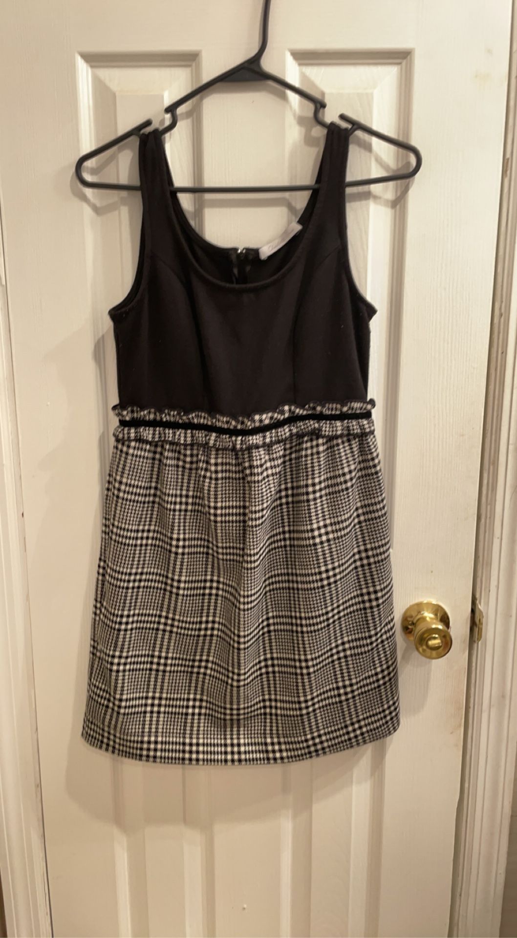 Great condition! Tank style dress from Charlotte Russe Size small Black tank on top with banded waist and plaid skirt (all connected as one dress) Zip up back