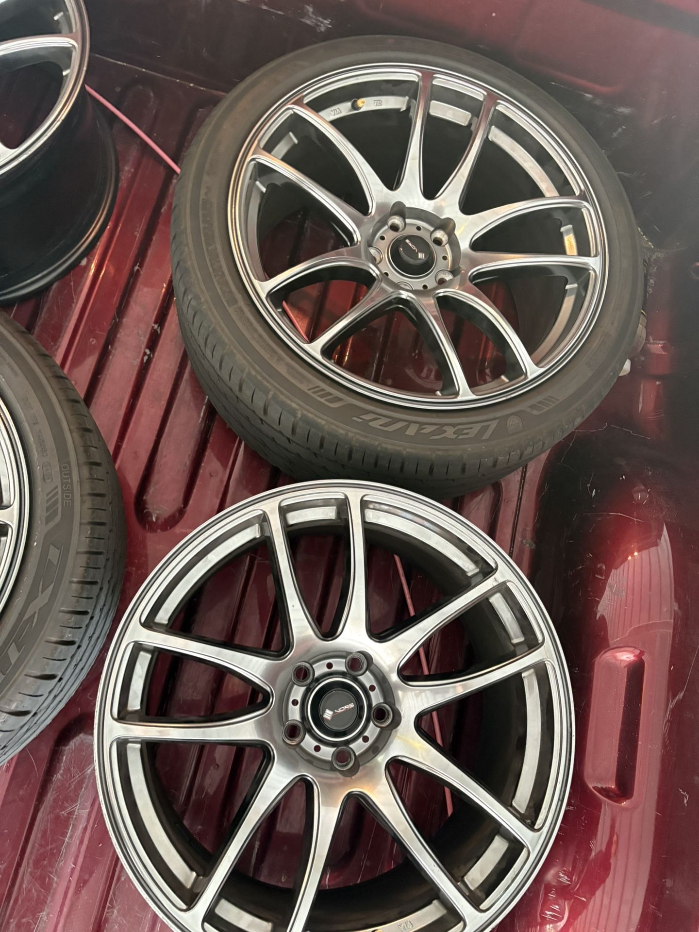 New tires Bolt Pattern: 5x114.3 mm or 5x4.5 inches Lug Thread: M12x1.25 Center Bore: 66.1 mm