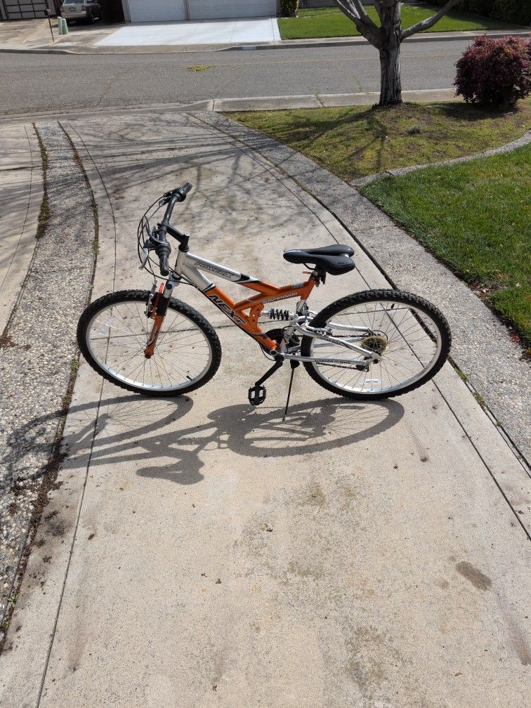 This is my son's 26-in full suspension mountain bike. It's older and has some slight surface rust but overall good condition and it's been recently tuned up and ready to go. New seat. Pick up in Turlock