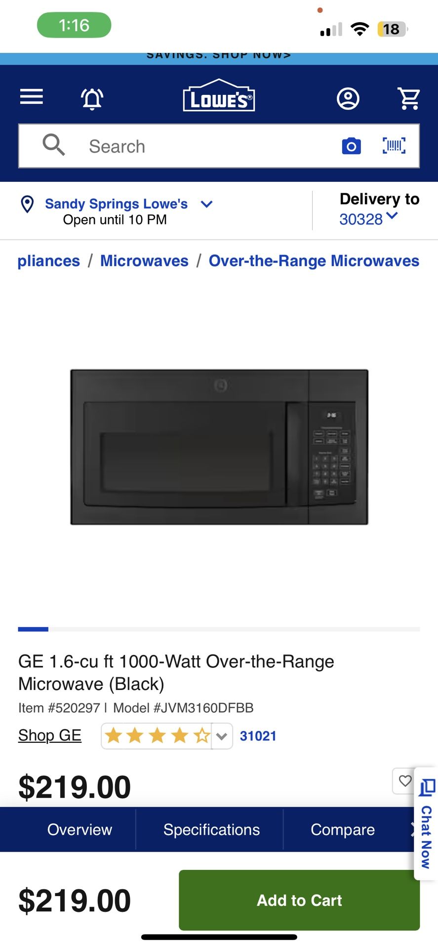 GE Over-The-Range Microwave