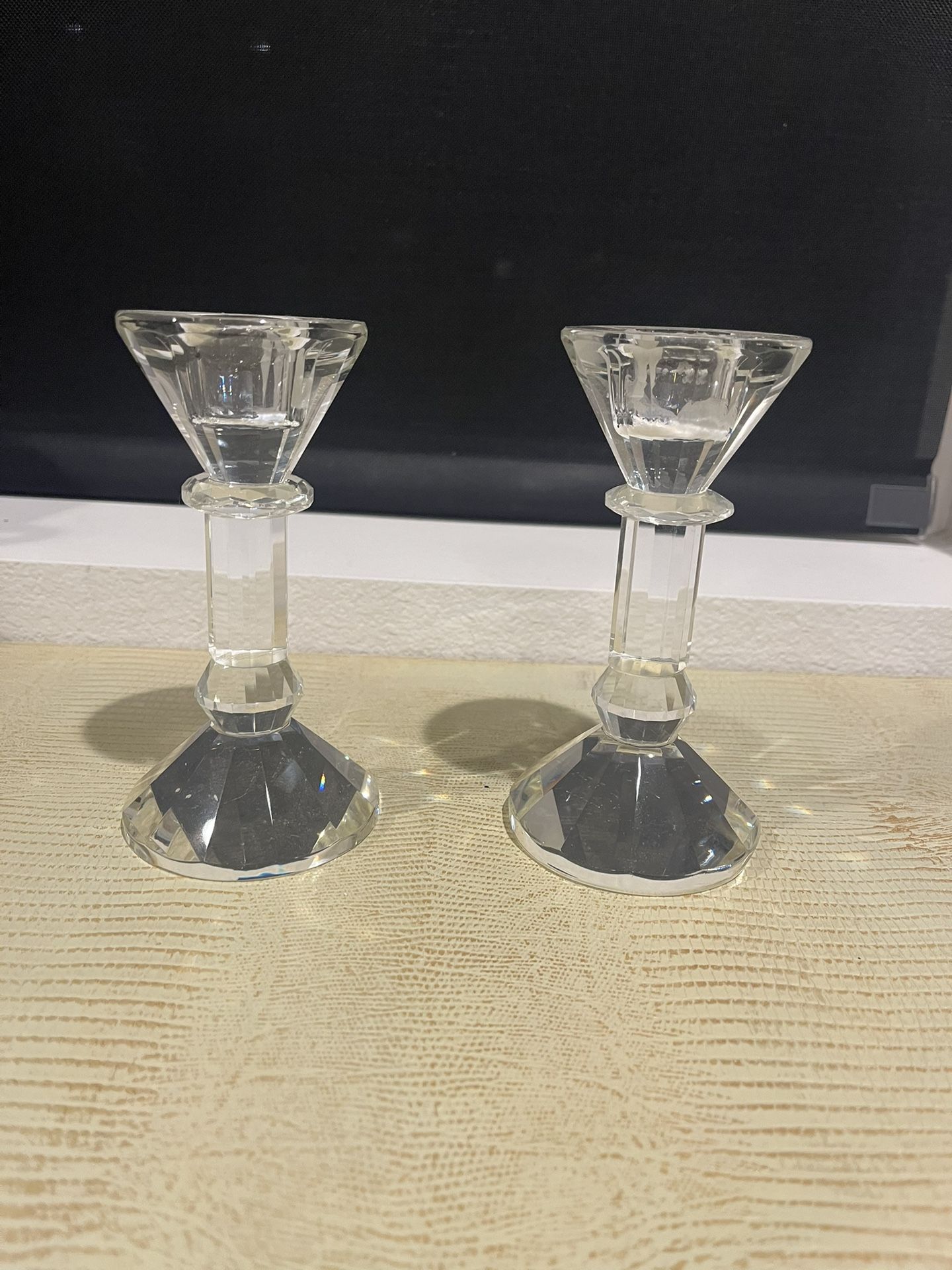 Used once at our wedding. Beautiful candleholders. Has some melted wax inside each of them, but not visible with candle inside. Pick up in 91913.