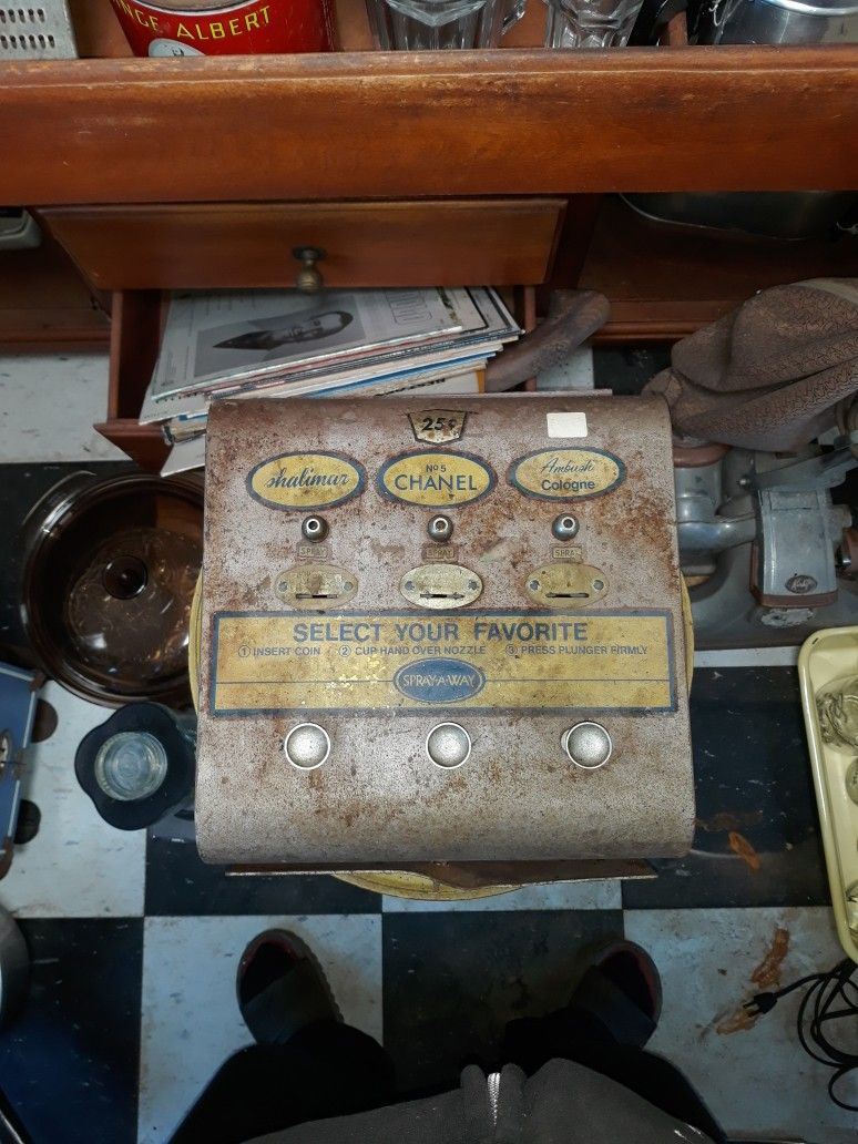 Vintage Cologne Perfume Vending Machine. Haven't fully tested, will need some restoration. There are scratches, scuffs, patina and spots of light surface rust. Located in Valley Center 92082 Asking $100 OBO MUST GO MAKE OFFER