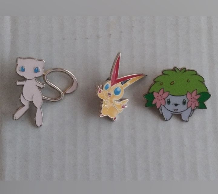 Pokémon enamel Collectible pins featuring Mew, Victini, and Shaymin Set Of Three