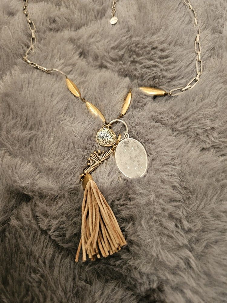 Stella Dot Victorian necklace. With Milky Quartz pendant