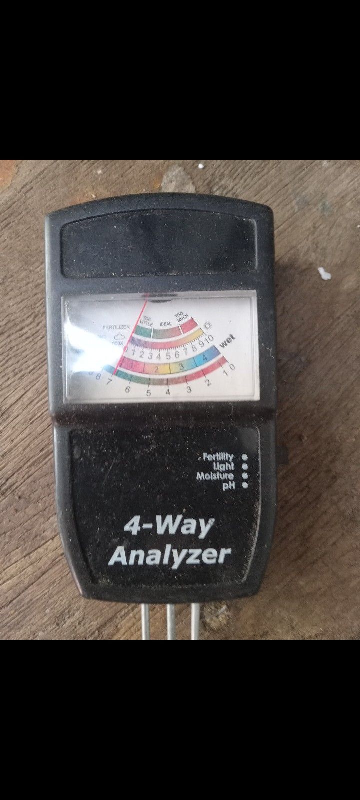 Measures Ferility, Light, pH, and Moisture in garden soil. It takes the guess work out of planting.