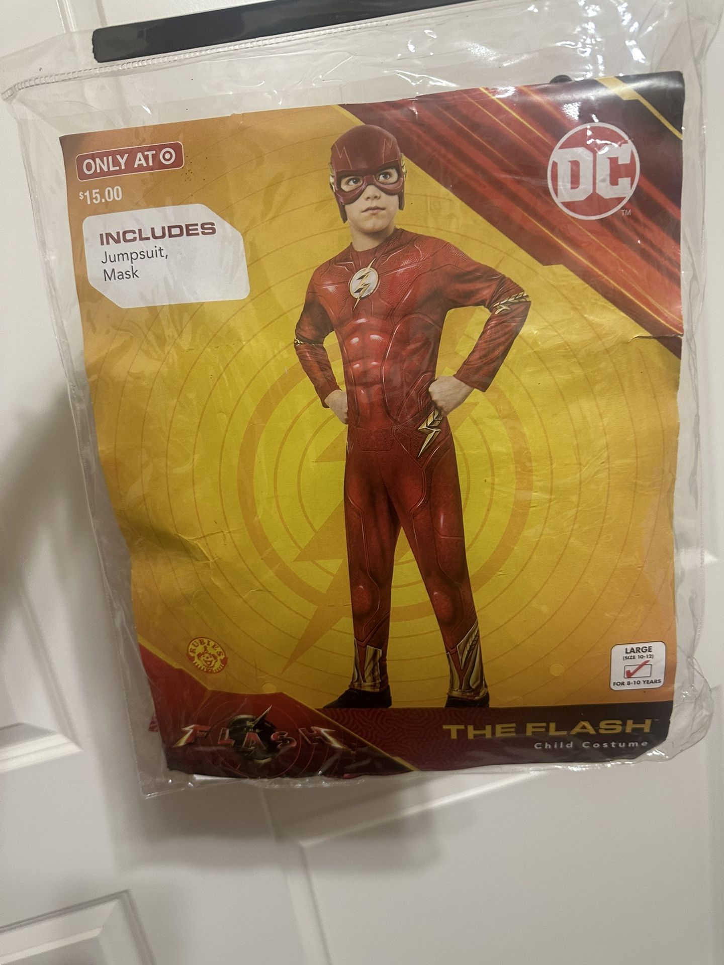Only worn once, in great condition. Flash Halloween costume for boys size large (10-12)