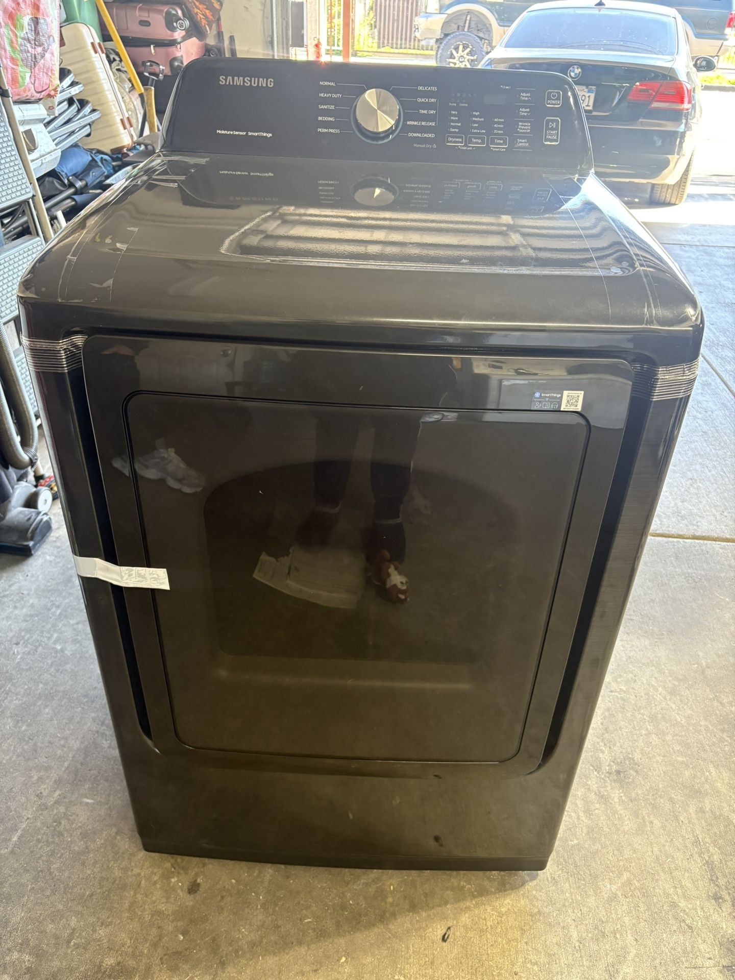 Fully electric dryer available for pick up or delivery if local. Never used and brand new. Only part missing is wire and airduct vent, which isn’t too expensive however it is a 4-prong plug that outputs up to 240V/40 amps, so please be sure you’re able to use it. It is 27 inches wide, 45 1/16 inches tall, and 30 1/4 inches long. Light weight and able to connect for app use, it comes with 10 preset dry cycles, 7 downloadable ones, 4 temperature settings, and 4 dry settings. Let me know if interested. And please know I am not willing to go lower on price please.