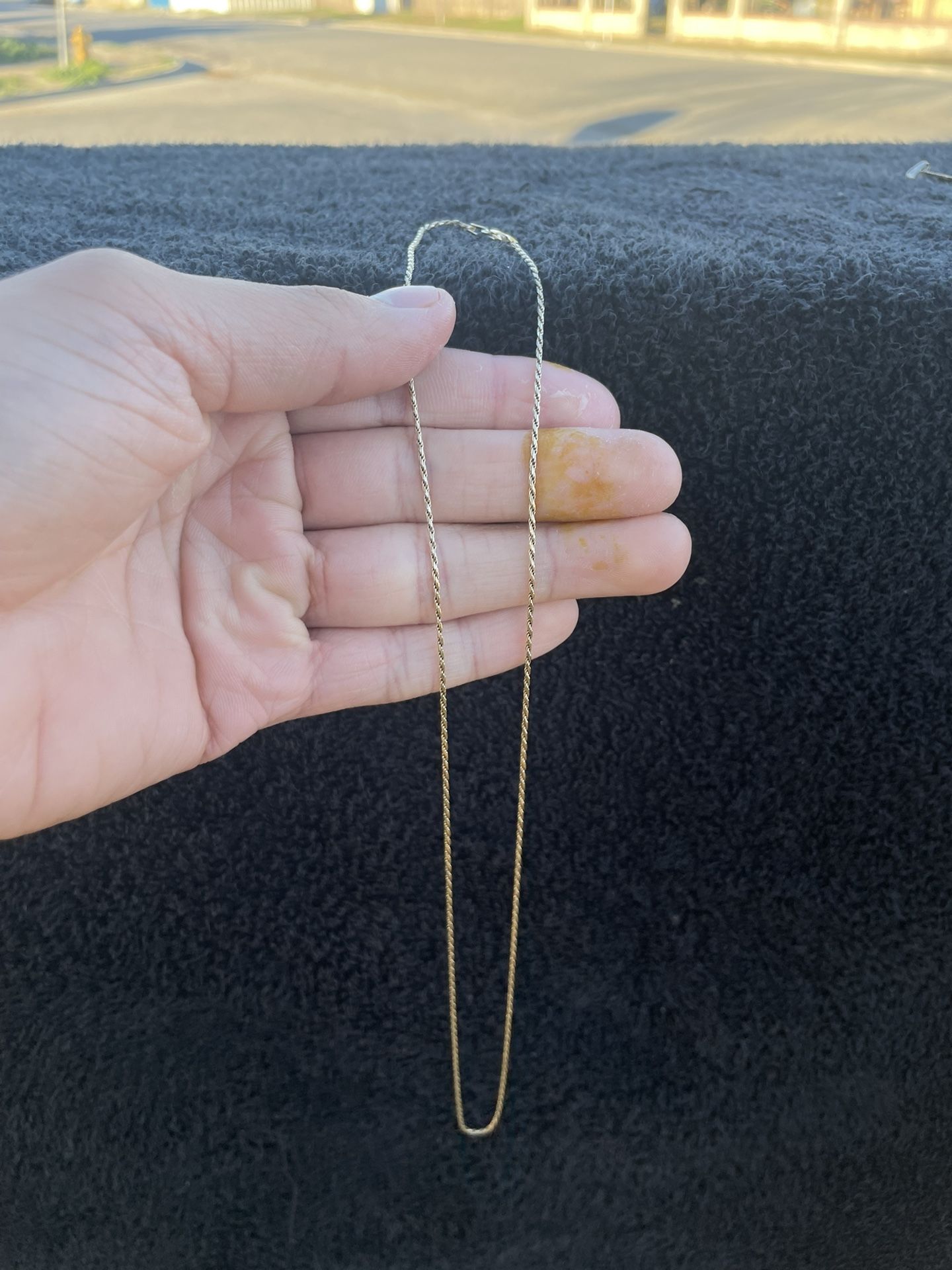 14k solid rope chain it’s long 24inches weights 4.1G 390$ or trade for other gold but it has to benefit me I also buy gold let me know 14k Gold Chain