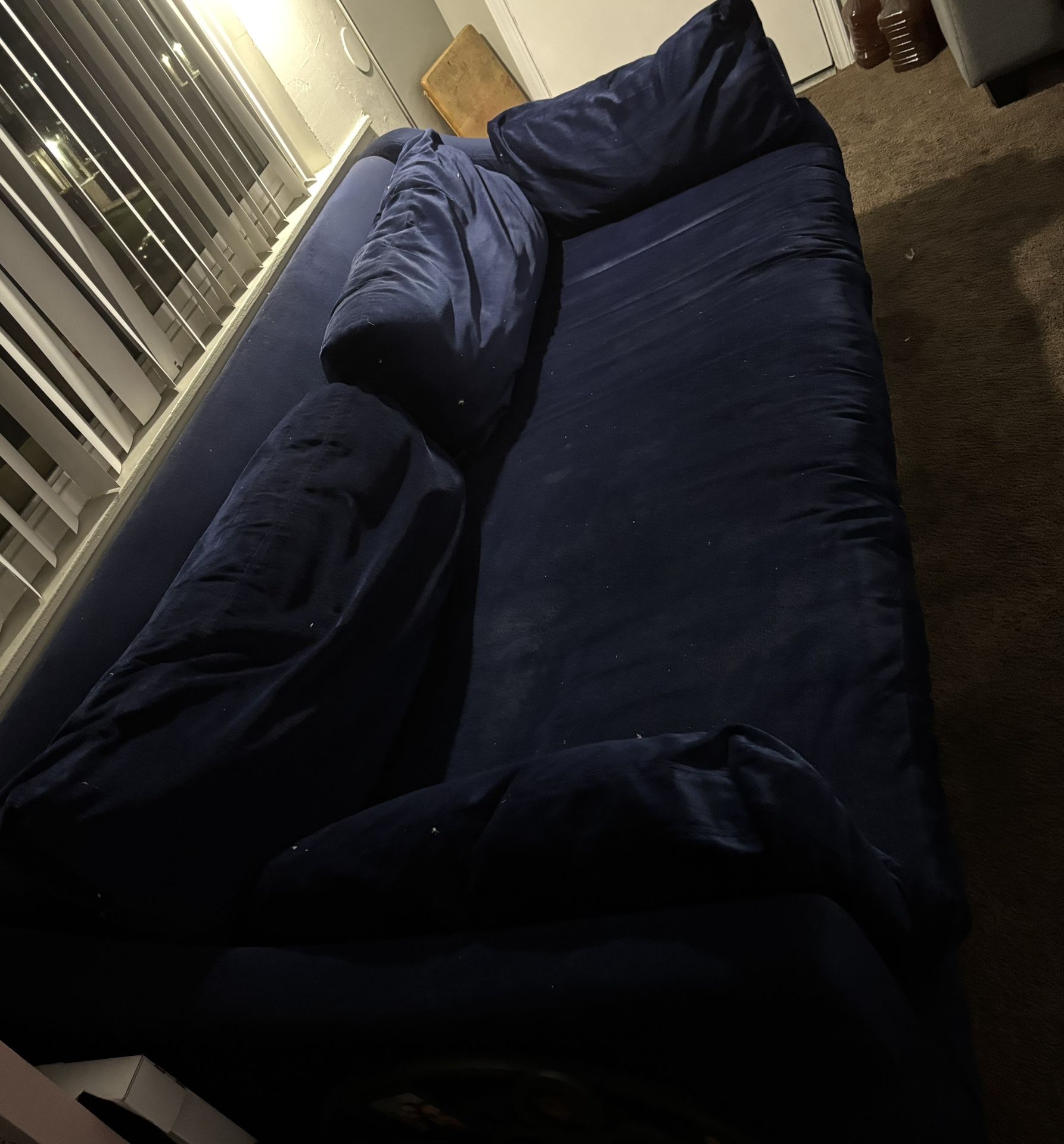 Blue couch ostritch feathers ...... superr comfy 8 ft x 3 1/2 FREE