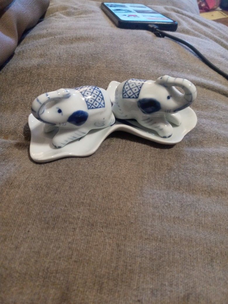 Vintage Salt and Pepper Shakers Set Thailand Elephants on Tray Safari Bohemian Boho Chic Eclectic Wedding Dinnerware Table Centerpiece Decor