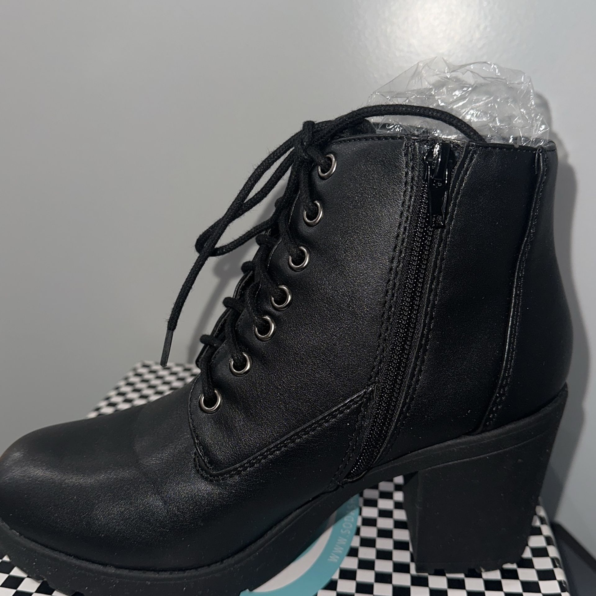 Black booties, Size 7 Have a zipper on the side. Only used ONCE. In great condition, basically new. Nothing wrong with them. Just decluttering my closet.