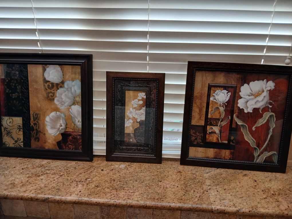 3 Picture set. Almost like new. Larger pictures are 19" x 19" smaller one is 16" x 10"