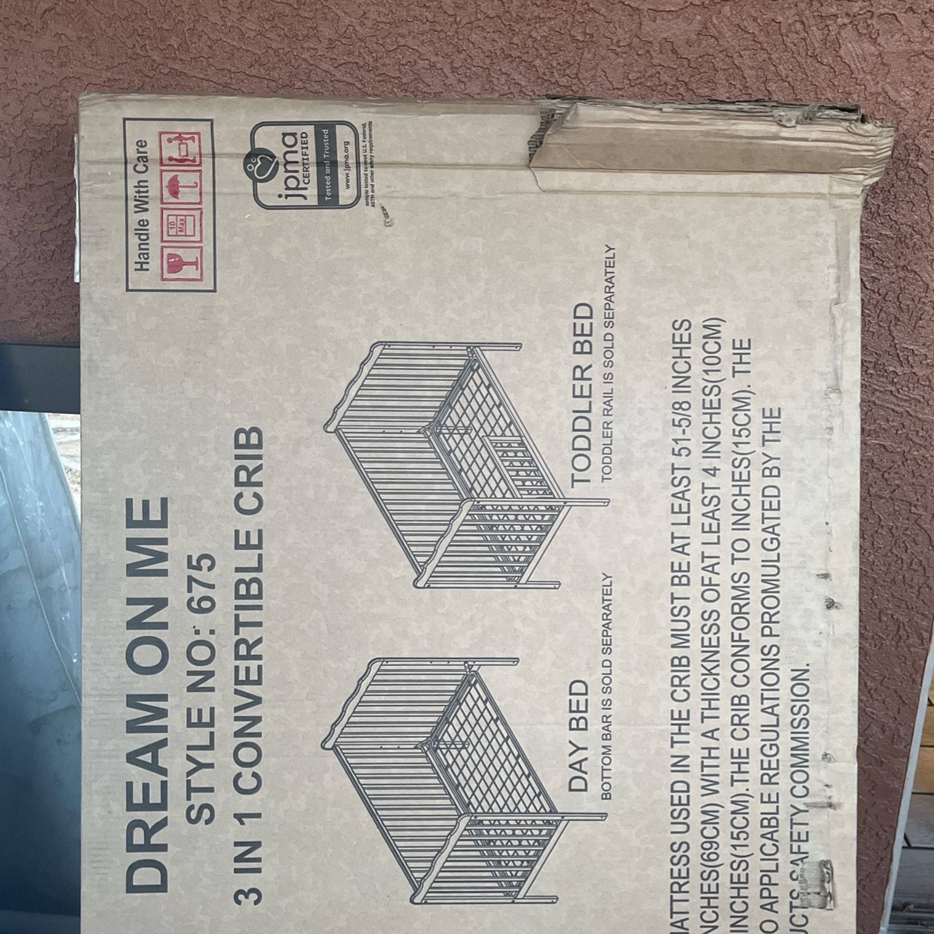 Clean interior Brand new in box Cherry wood crib