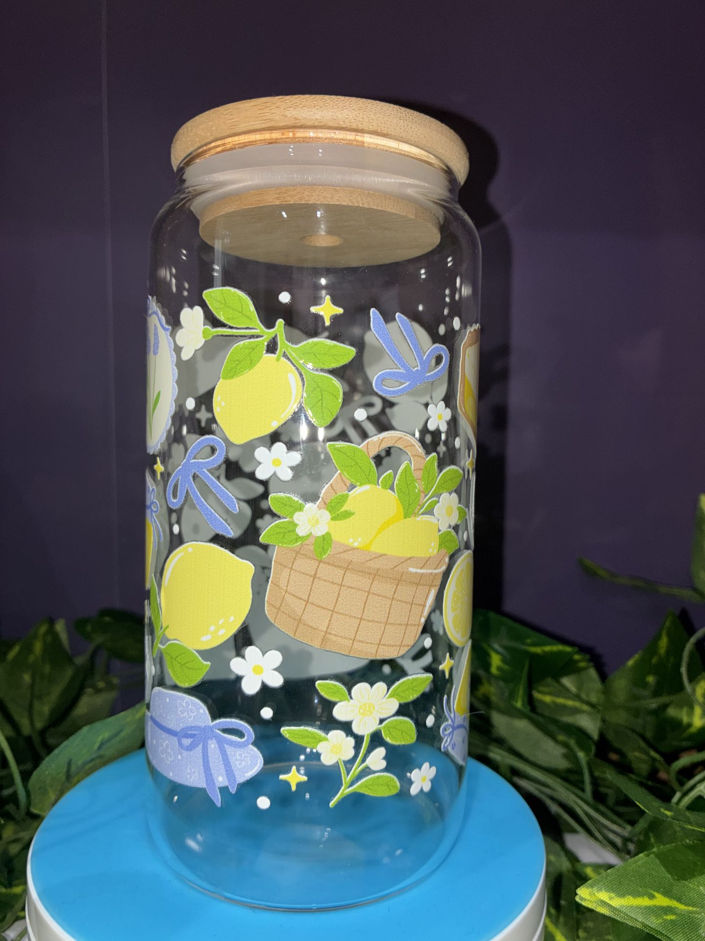 Lemon theme 16 oz glass cup