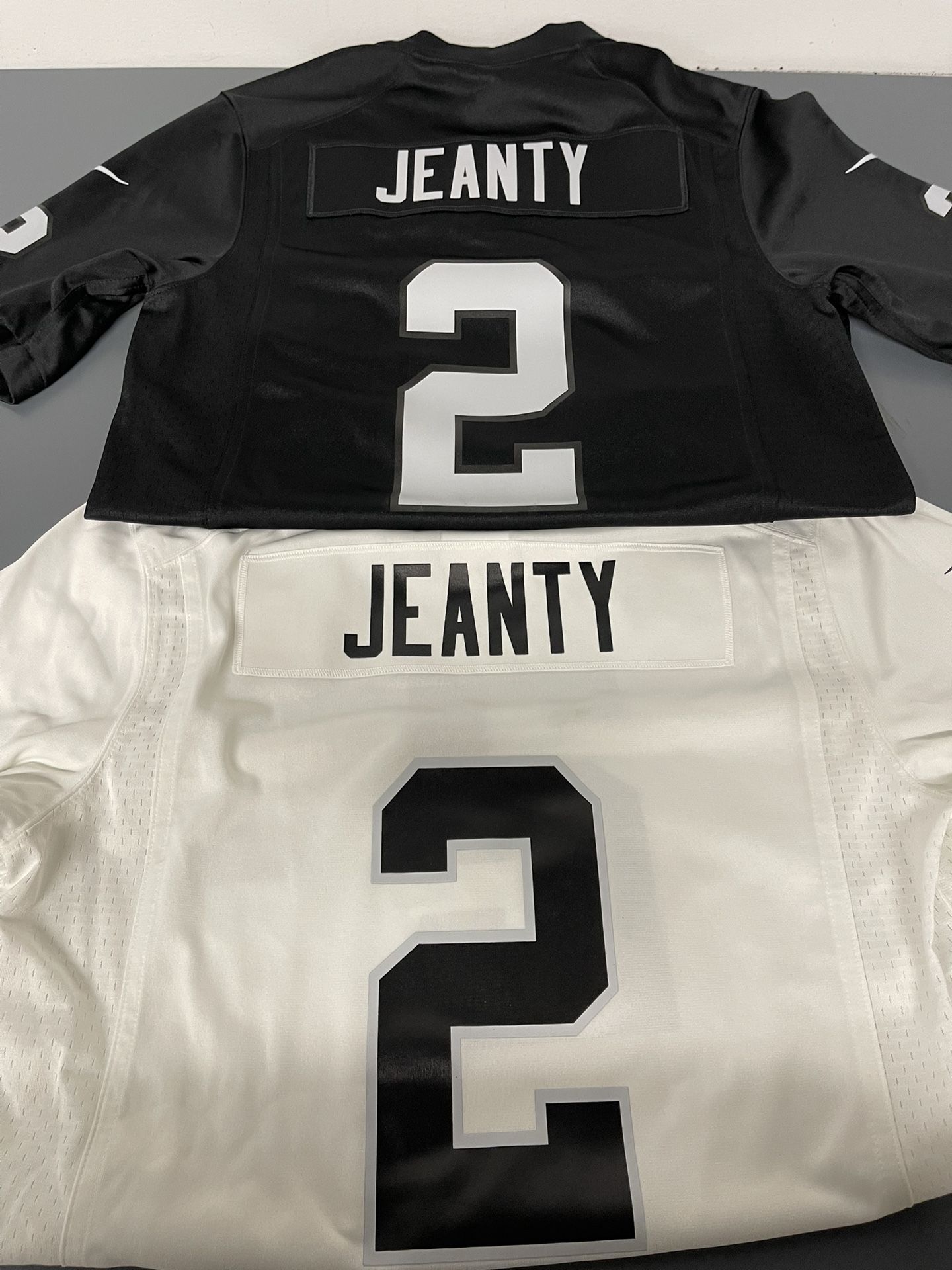 Raiders Ashton Jeanty Game Jersey. Black or white. Please ask for size if interested. They are going by very fast so im very limited on sizes. Serious buyers only please.