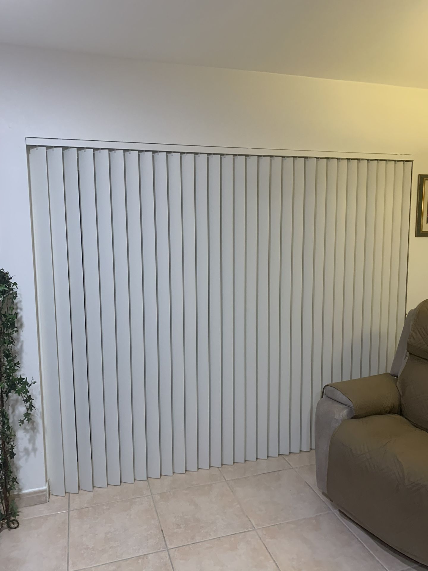 Vertical blinds practically new from a young professional couple with no pets, no children and smoke free home. 95 3/4 inches wide by 77.5 inches high. Area of north Kendall (SW 142 Ave and Bird Road. They open to the right side. Exact cash only accepted.