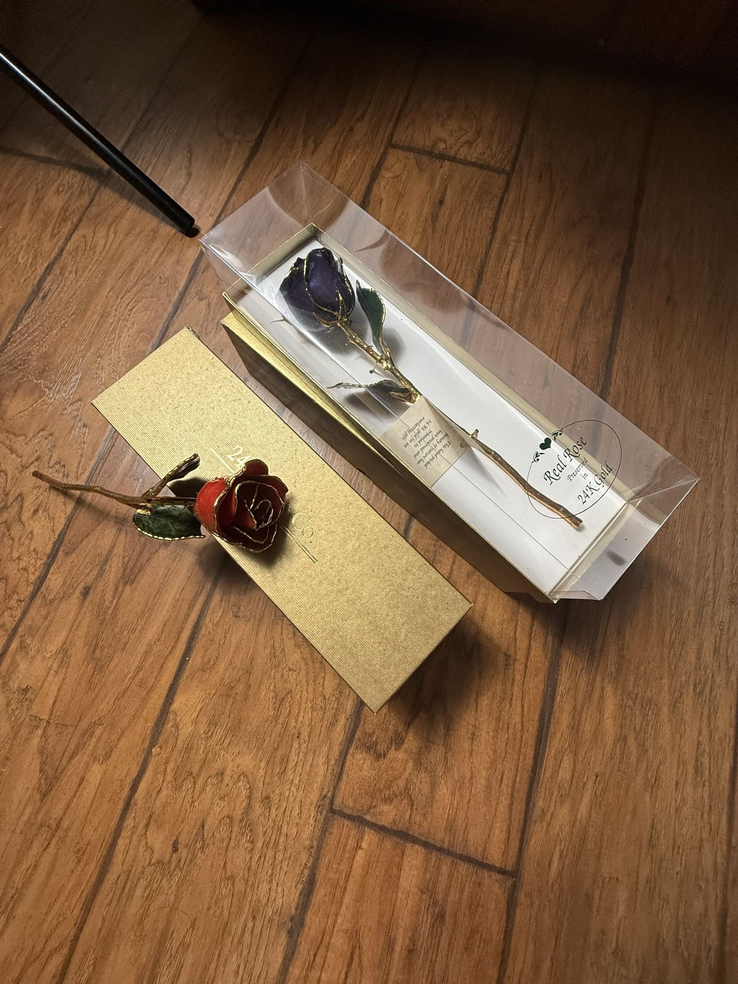 2pcs Real Rose Preserved In 24k Gold