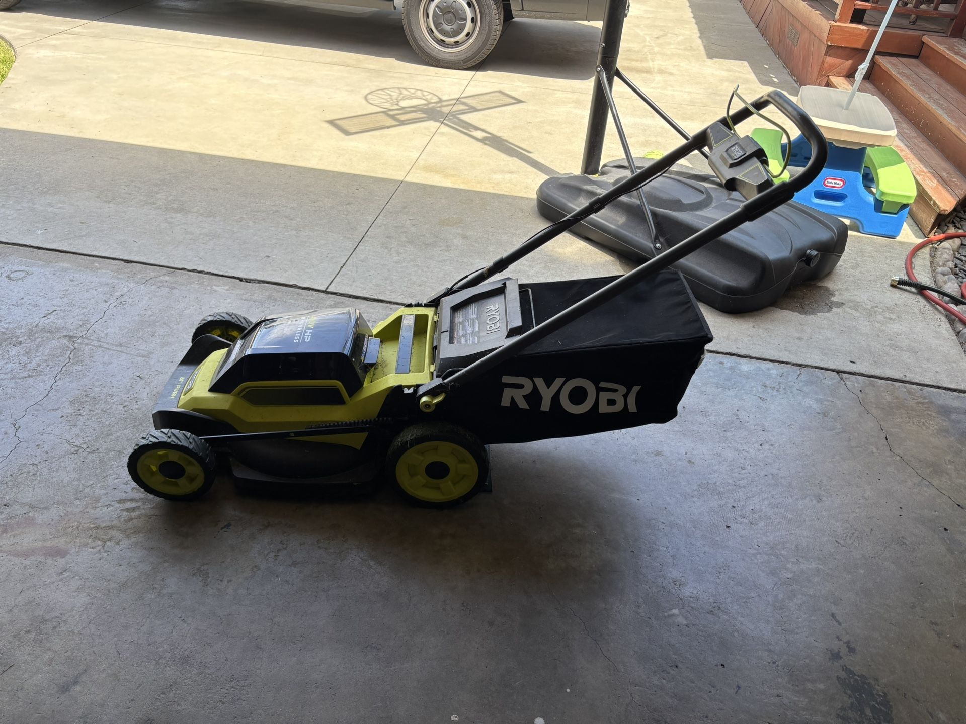 Selling used ryobi push mower. Used for a year and getting a self propelled one. Bag and mulch attachments included