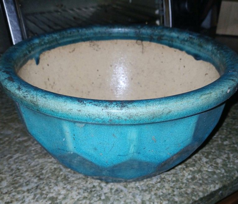 Beautiful pot In excellent condition and priced for a fast sale. It's roughly 9 in wide and 4 in deep. No cracks chips gluter broken pieces. I have lots of other pots , including new Inventage , the main event are the gorgeous tropical plants. I am a horticulturist. Please check my offers and make a wish list My home tropical jungle By appointment.