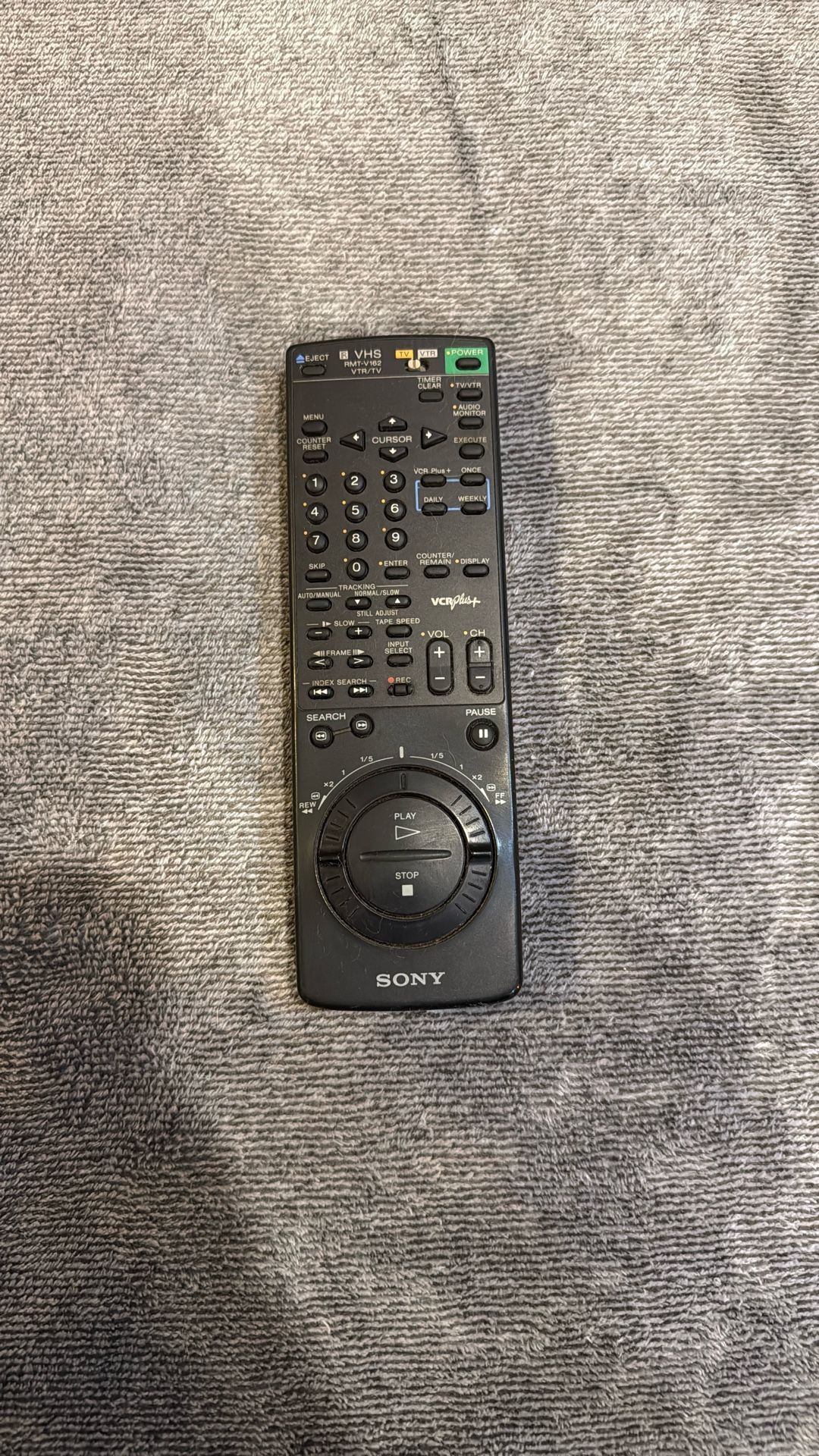 Original Sony VCR remote control, model RMT-V162, for Sony VHS VCR players and TV/VCR combo units. • ✅ Genuine Sony remote (not universal) • ✅ VTR/TV switch, Eject, Timer, Audio Monitor, VCR Plus+ functions • ⚠️ Cosmetic wear from age/use (see photos) • 📦 Remote only – no batteries included and missing the battery cover Perfect replacement for vintage Sony VHS VCR units.
