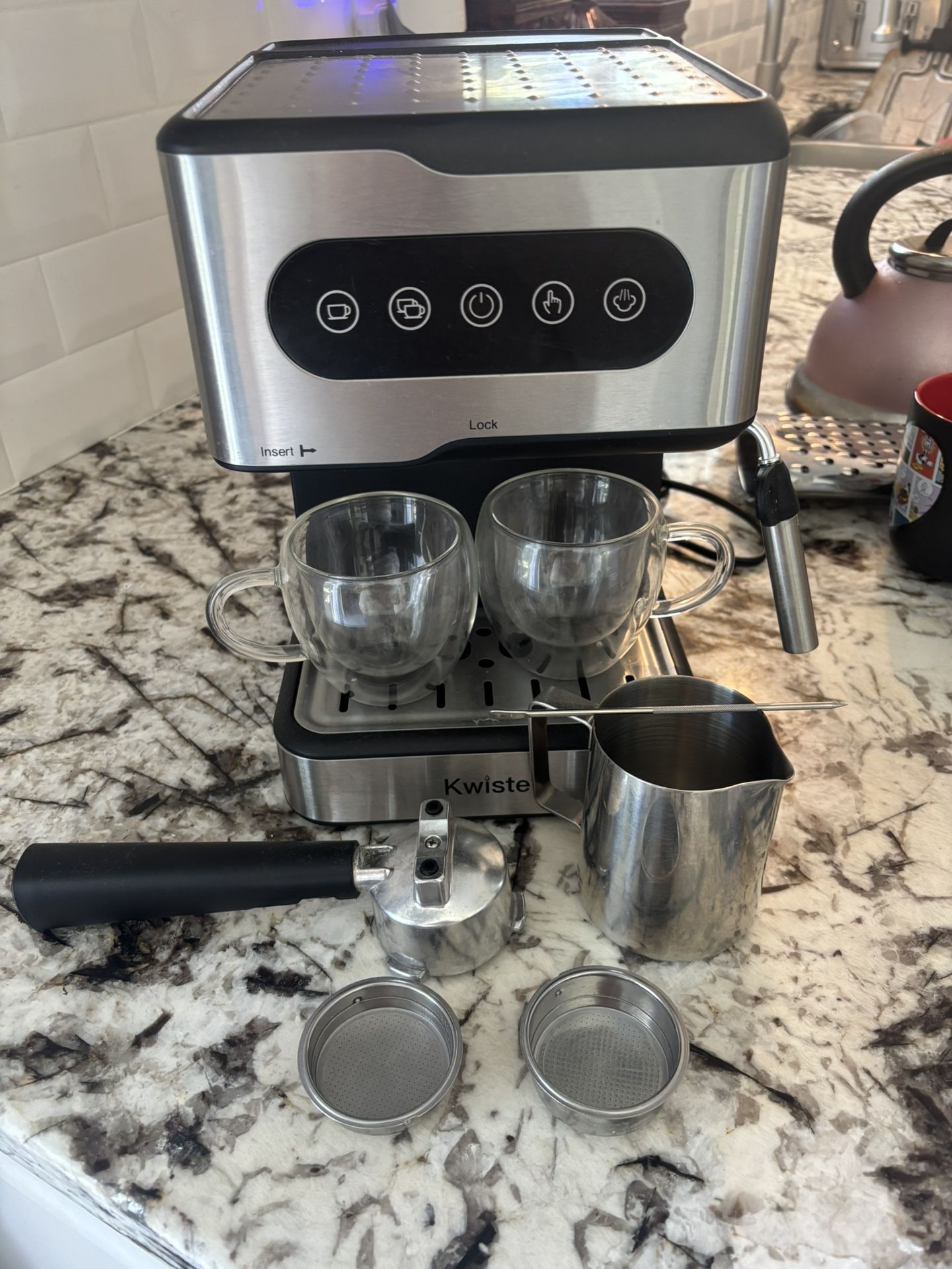 Kwister Espresso Machine, Espresso Coffee Maker Cappuccino Machine with Milk Frother, Coffee Machine with Digital Touch Panel, Removable Water Tank, Stainless Steel