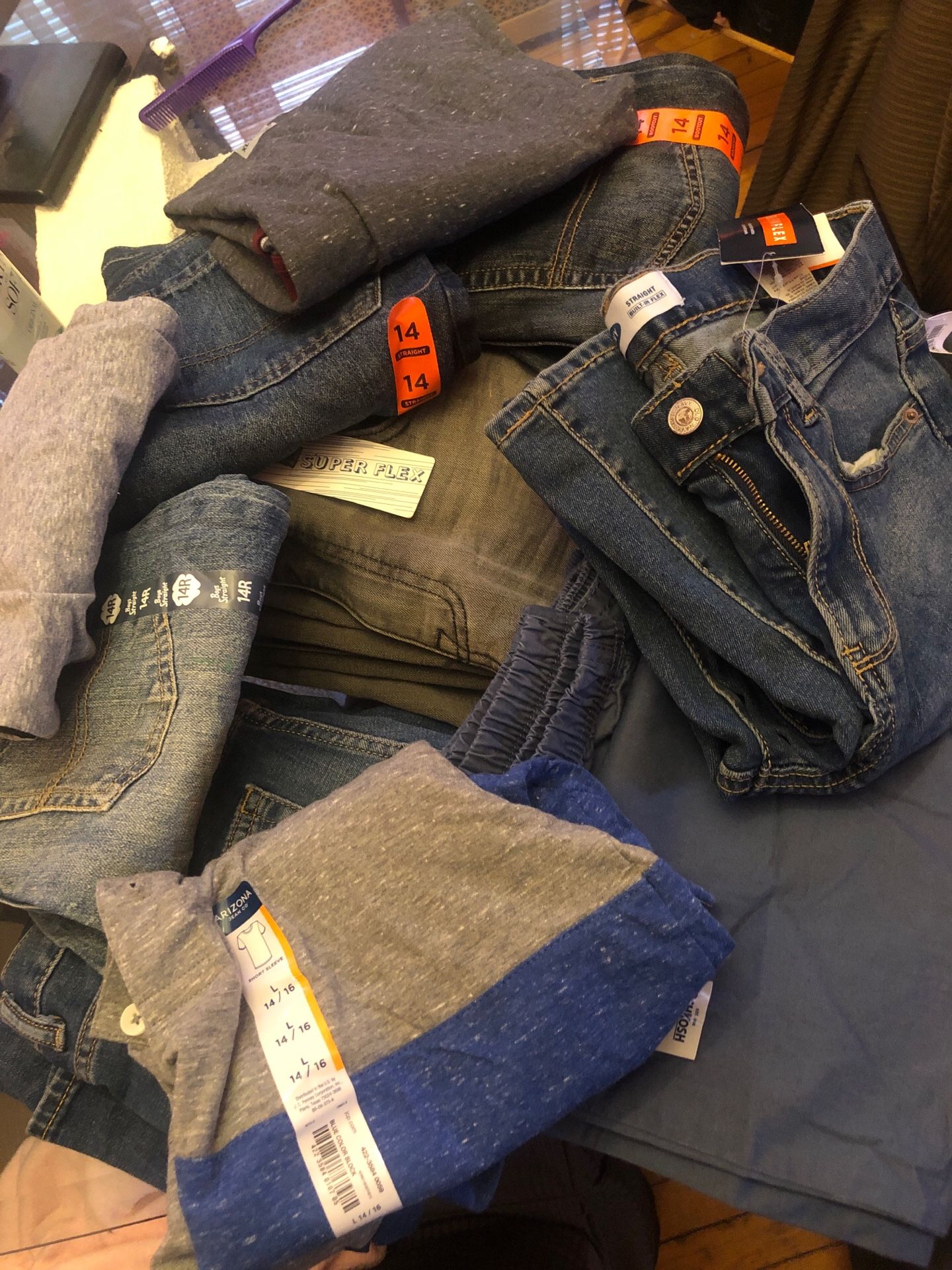 Osh kosh, children’s place and Arizona clothes for boys size 14 and it’s 7 pairs of jeans and 3 shirts brand new asking $70