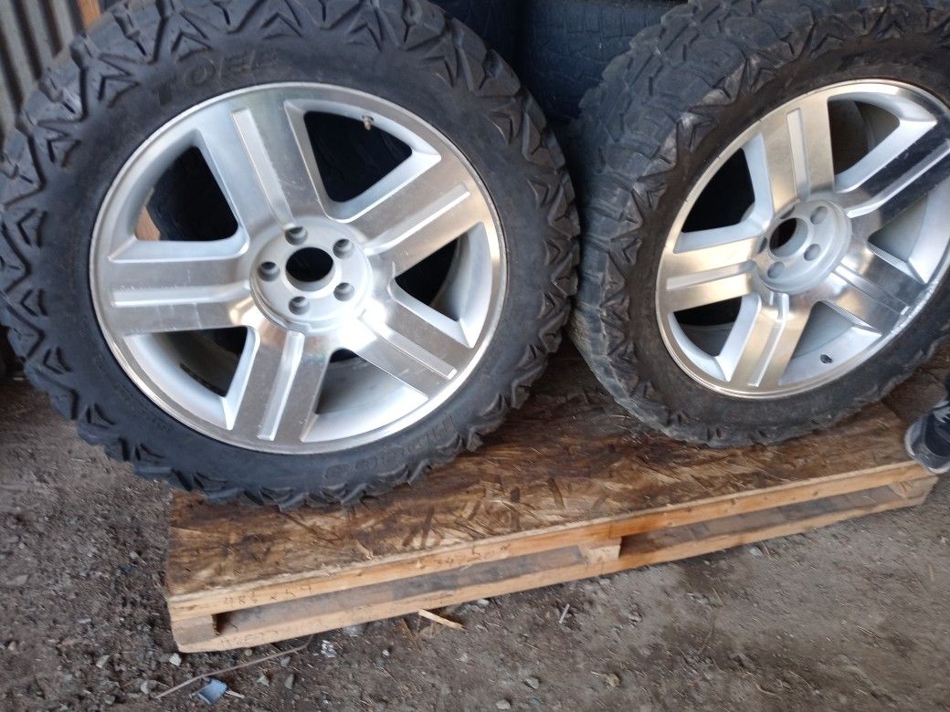 35s for 22" rims still very healthy The 2 rims what come with the tires fit a 5 lug Chevy they both have repairs made to them 250 cash obo