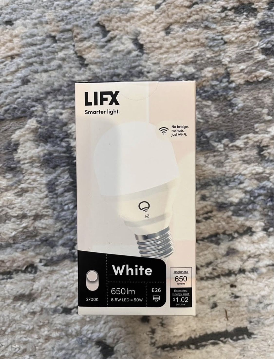 One white LIFX e26, 650lm lightbulb