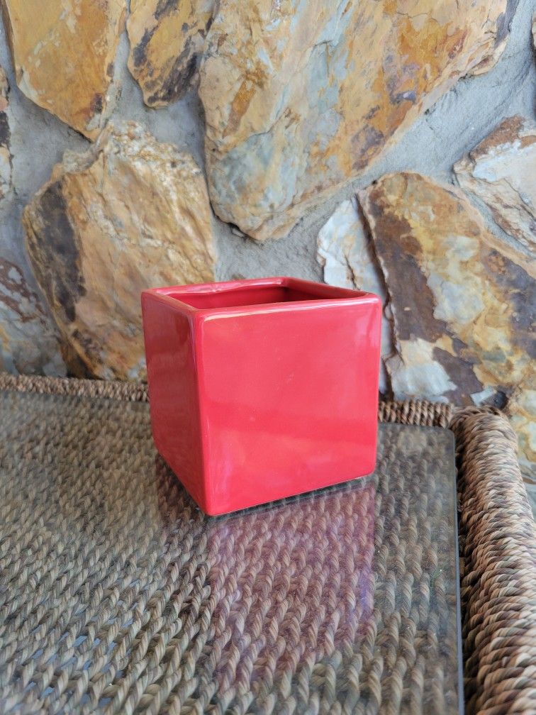 Red square ceramic pot 4 x 4 x 4 inches New Other pots available